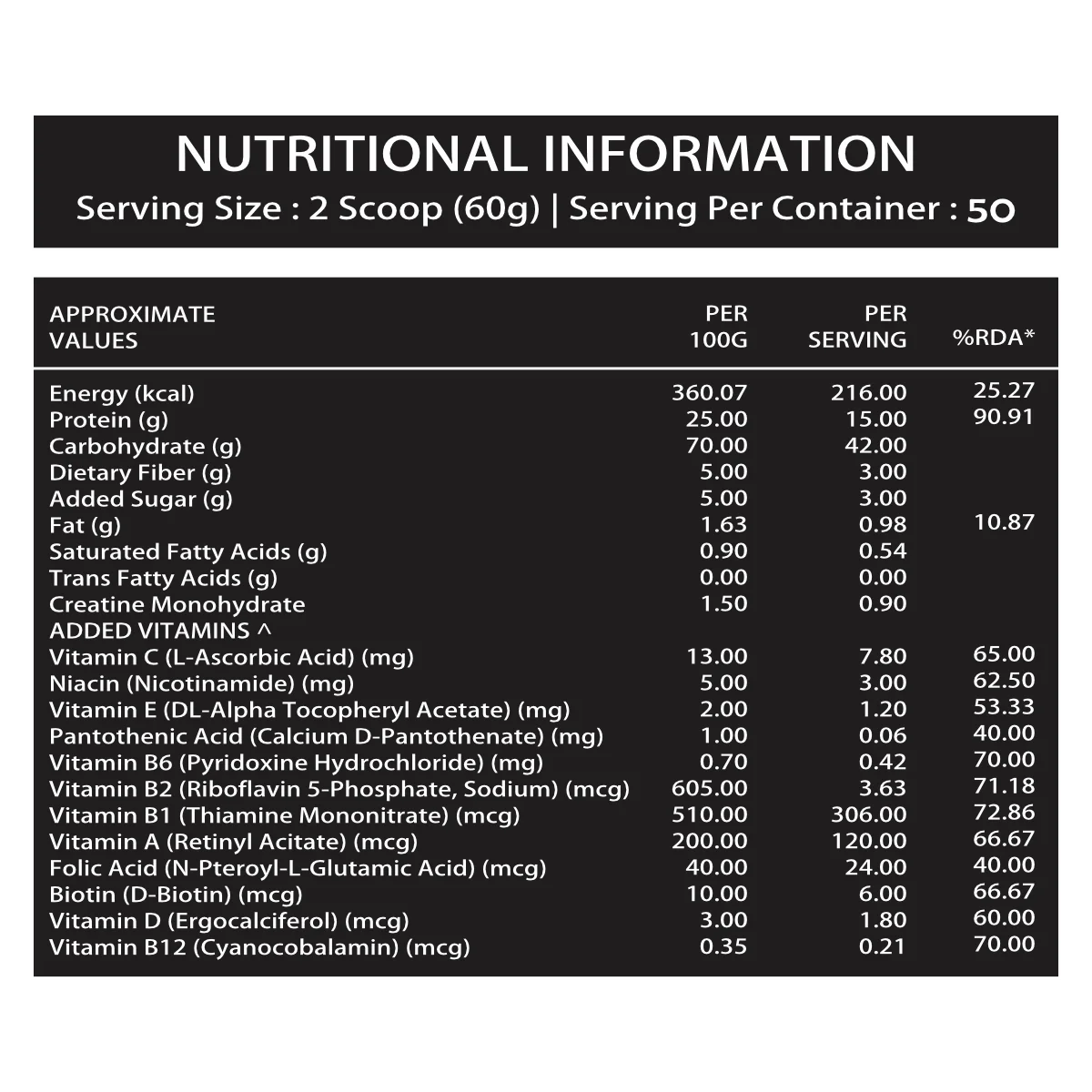 Muscle Growth and Repair: With 25 grams of high-quality protein per serving, Yeti Heavy Mass Gainer helps in the synthesis of new muscle tissue, ensuring that your muscles recover quickly and grow stronger after each workout.
