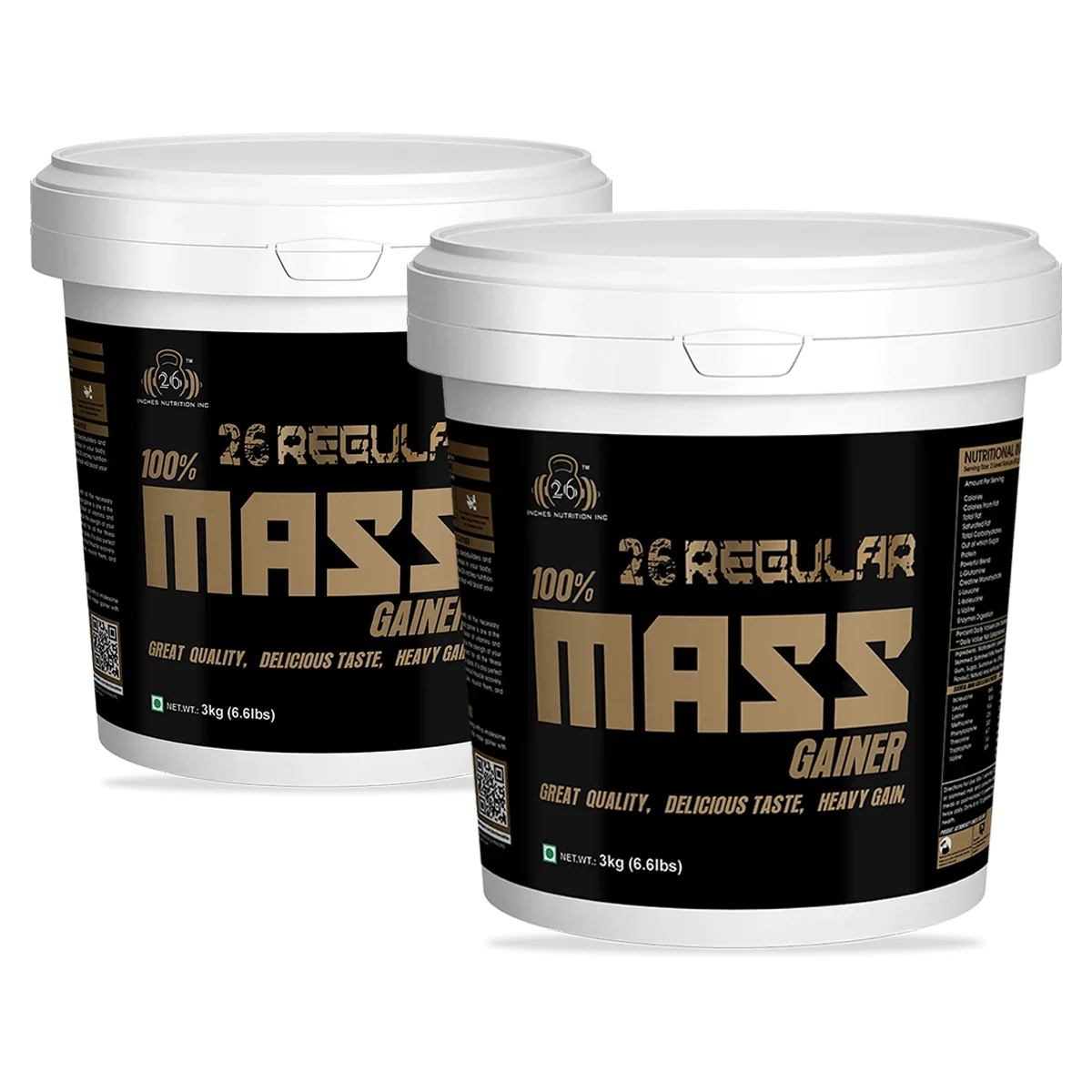 26 Inches Regular 100% Mass Gainer has a range of Mass Gainer & Weight Gainer in a variety of flavours and special ingredients like Digezyme, a blend of digestive enzymes, to give better results with maximum absorption.